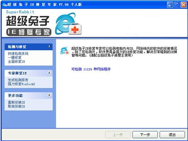 官方软件分类:浏览辅助大小:754 KB时间:2026-01-13软件介绍:超级兔子IE修复专家能够快速、全面、一键修复IE浏览器和强力修复WinSock ,超级兔子ie修复专家可能生成检查 立即下载IE一键修复 0.1 - IEKing