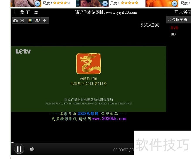 3、 点击搜索之后,会打开相应的电影网站.
