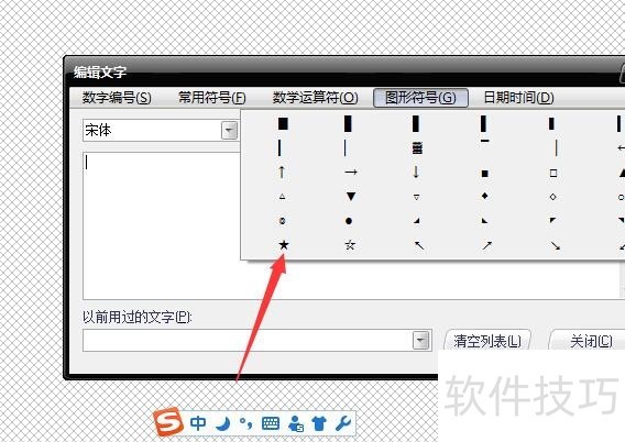 7、 除了插入数字编号,还可以插入图形符号等,选择常用符号,单击五角星,就可以插入一个五角星。