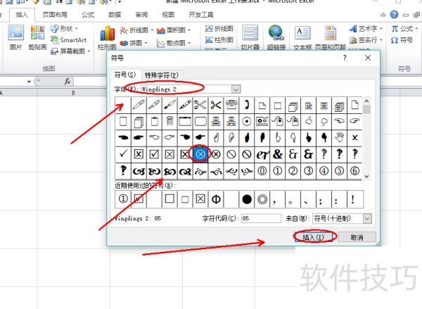 在Excel中插入特殊符号的步骤如下: