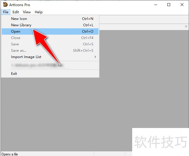 3、 选择"File"->"Open"菜单选项。