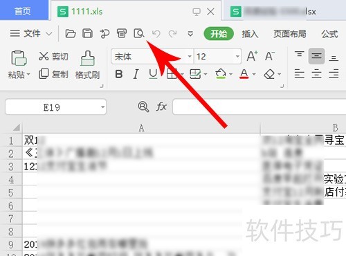 2、 打开wps表格,然后点击“打印预览”图标,位置见下图。