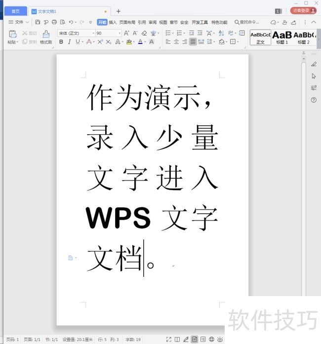 2、 在文档中录入少量文字作为效果演示。