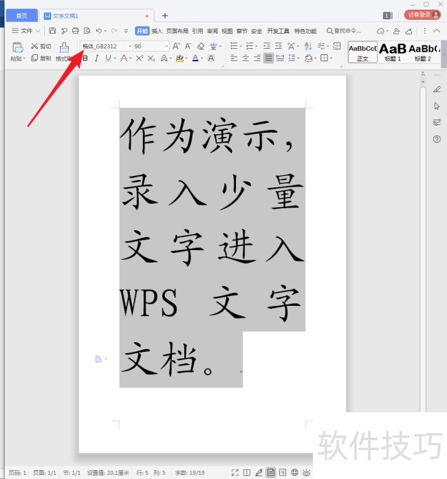 8、 直接点击需要的楷体GB字体,就为选中的文字快速应用上了该字体。