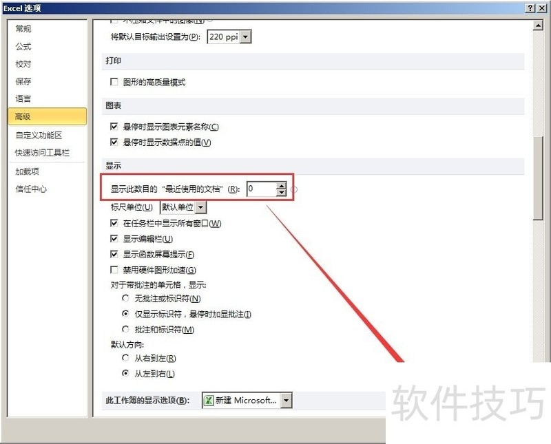 3、 把“显示此数目的最近使用的文档”数目设置为“0”