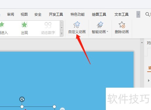 5、 然后点击自定义动画。