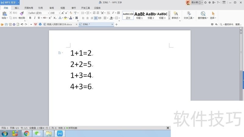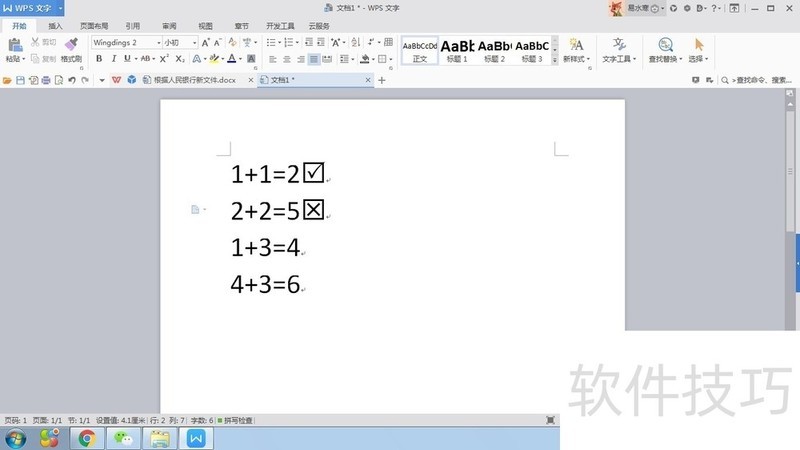 1、 打开WPS文字,输入我们需要判断对错的内容;