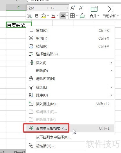 2、 选中该单元格,单击鼠标右键,选择【设置单元格格式】,如下图所示: