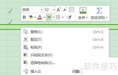 3、 如图所示,选择要插入行的位置