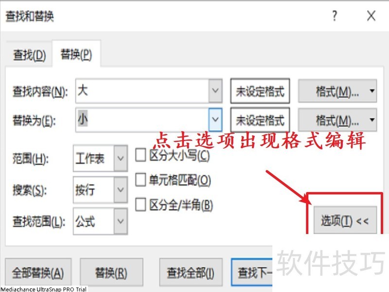 当大量查找和替换的数据仅存在格式差异,常规的查找和替换功能不再适用,此时需进行更为细致的设置。