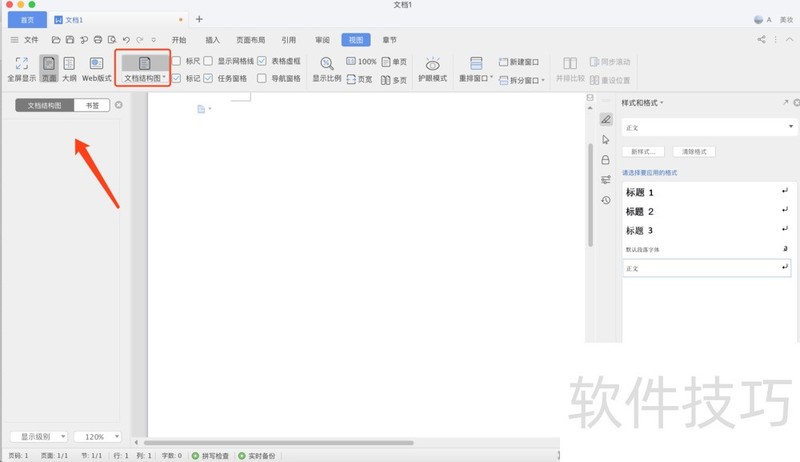 3、 3、点击【视图】编辑页面的左上方的【文档结构图】即可是示【目录】。