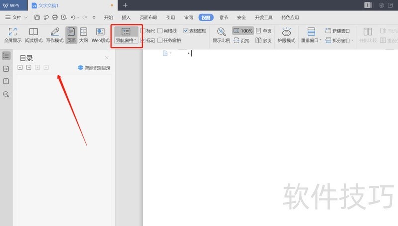 3、 3、点击【视图】编辑页面的左上方的【导航窗格】即可是示【目录】。