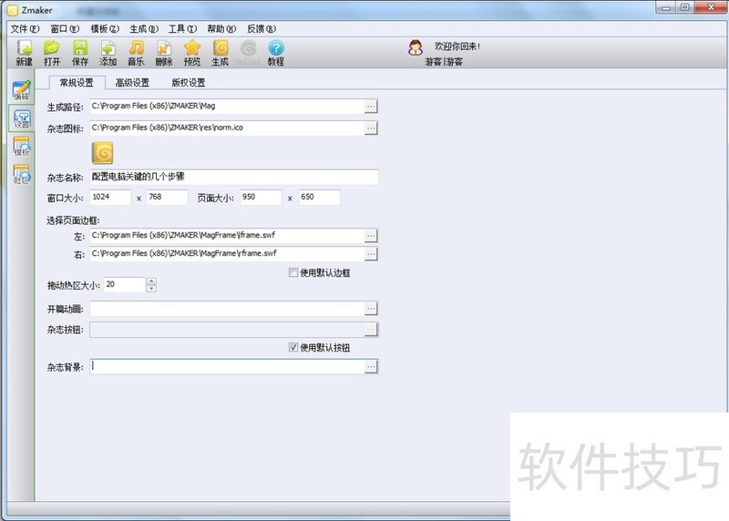 zmaker如何更改杂志背景和去技术支持水印