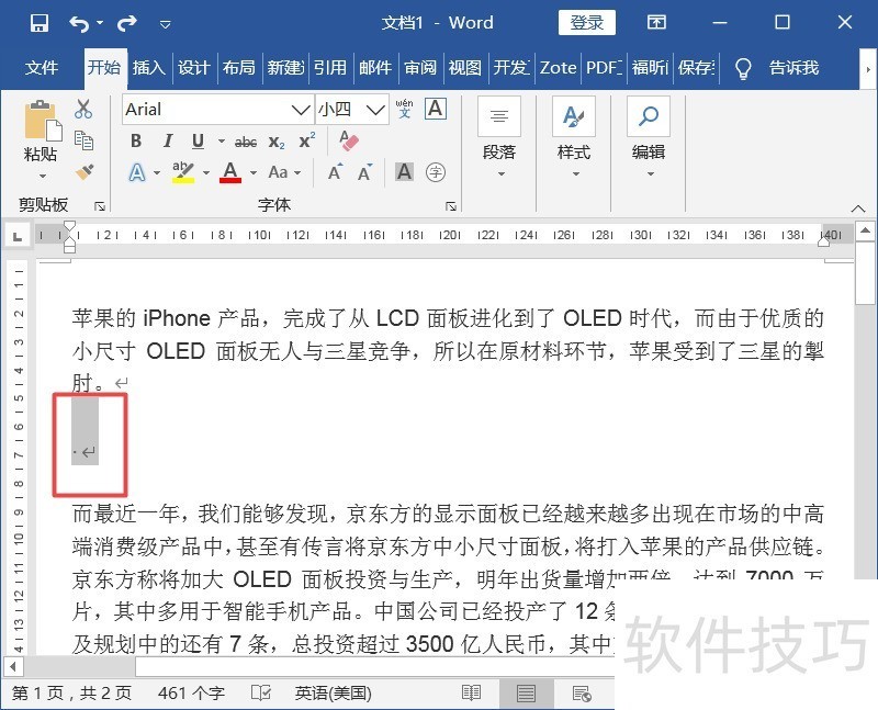 2、 输入内容,并将光标移动到相应位置。