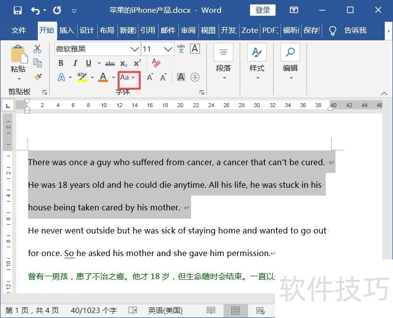 4、 找到【更改大小写】功能。