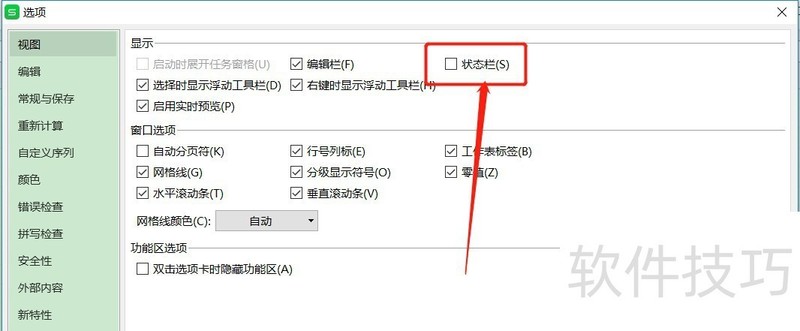如何恢复Excel工作表的状态栏显示?