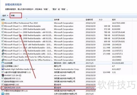 2、 注销软件后,到控制面板中卸载软件。卸载成功后,重启电脑,到官网中下载最新版的定时关机3000.