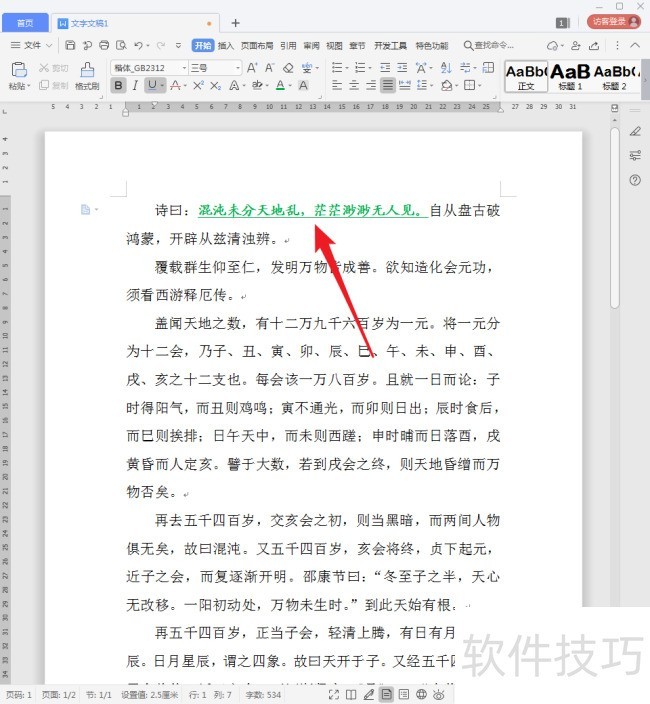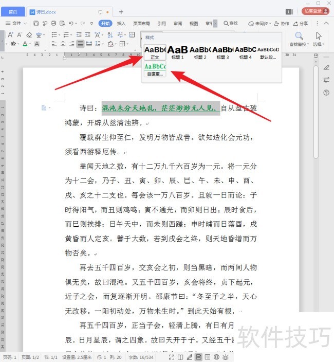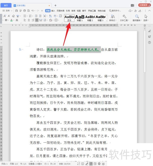 4、 看,进行了特殊设置的文字当前还是使用的【正文】样式。