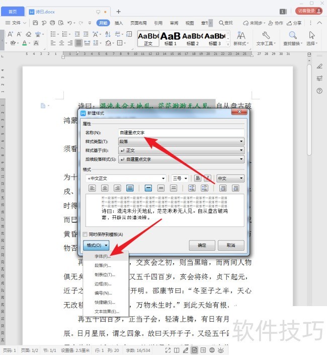 5、 保持选中特殊格式的文字,点击【新样式】中的【新样式】。
