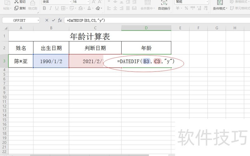 在Excel中,单个函数即可轻松实现年龄计算。