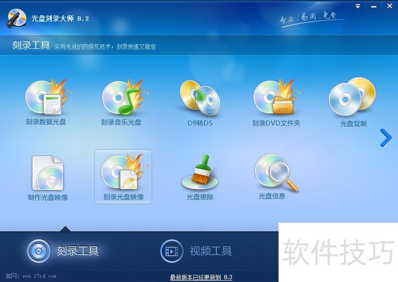 1、 打开光盘刻录大师,点击【刻录工具】中的【刻录光盘映像】功能。