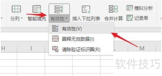 3、 上方【有效性】选择【有效性】。