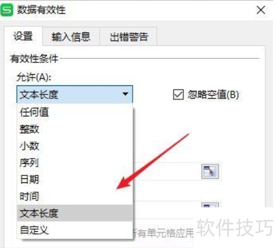 4、 下拉选择【文本长度】。