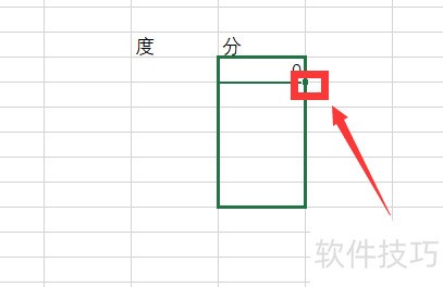 1、 首先在excel中任意单元格输入“度”和“分”。