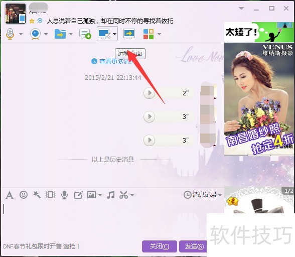 6、 还有一个就是屏幕分享,这个就相当于是老师一样的,可以选择某个窗口然后分享这个窗口的画面到对方。以自己为主导