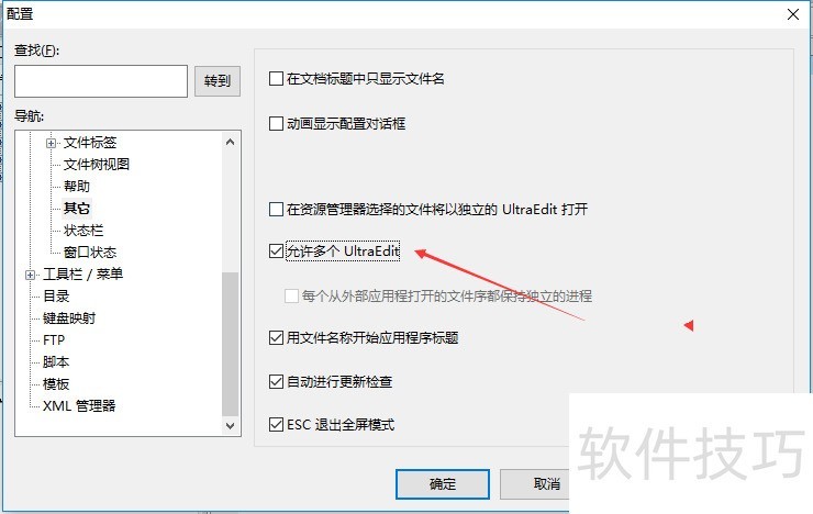 5、 进入到了其它?的界面中,然后去掉?允许多个Ultraedit? 选项勾选