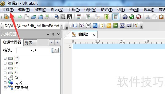 2、 进行打开了UltraEdit的界面当中,进行点击菜单中“文件”菜单。