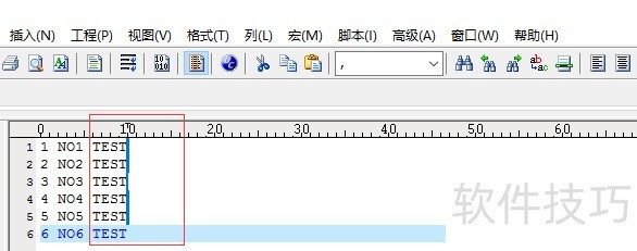 3、 列编辑模式下,在需要删除的地方按住鼠标左键往下拖动,在每列末尾 我们加上TEST,这就是列编辑了,轻轻松松实现。