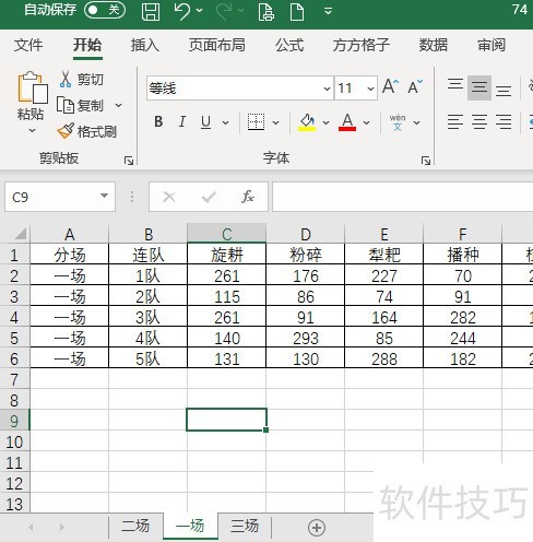 1、 如下图是某农场各个分场农机作业情况,现在想要快速汇总出各个分场作业情况。