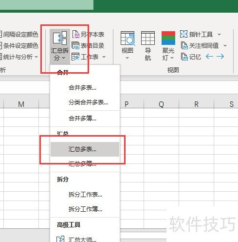 4、 然后点击【汇总拆分】,选择【汇总多表】