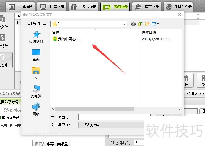 5、 弹出了请选择歌词LRC文件对话框中“双击该歌词”