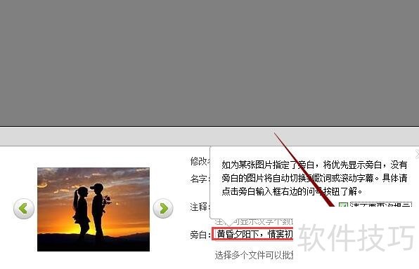 1、 打开数码大师程序后,系统自带一套示例图片。我就以它作为例子讲解如何添加旁白。单击修改名字/注释/旁白按钮。
