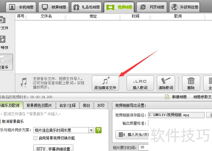 数码大师怎么插入背景音乐与音乐歌词显示并同步
