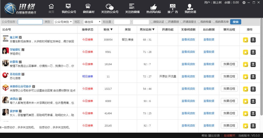 迅蟒自媒体营销助手是一款专业的自媒体营销工具,覆盖全网过亿移动互联网活跃粉丝,实时更新亿万数据库,为自媒体运营者和广告主提供安全、诚信、专业、自愿的服务。它具备编辑器、海量素材免费使用、担保交易等功能,让用户快速上手并打造爆文。此外,它还支持多开管理,并且老板模式可开设多个子账号,监控交易详情。同时,聊天远程系统也得到加强,让用户派单接单更加便捷。迅蟒自媒体营销助手是一款非常实用的工具,能够帮助用户快速实现营销目标。