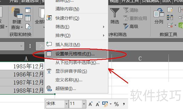 选中日期单元格,右键点击,选择设置单元格格式选项。