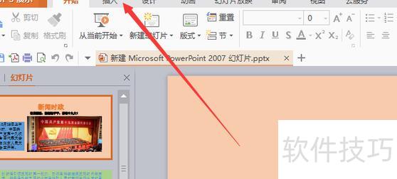 打开需添加背景音乐的PPT文件,点击菜单栏中的插入选项即可开始操作。