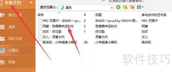 打开后弹出本地文档框,选中准备好的音频文件,点击确认即可。