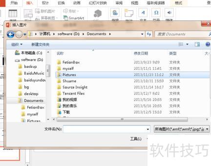 制作PPT时,从收藏夹中快速选取图片素材,效率显著提升。