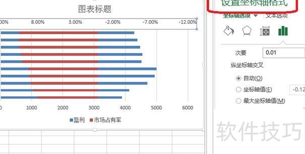 双击坐标轴,进入格式设置,选择坐标轴选项,将最小值设为-0.12(依原始最大值调整),并勾选逆序刻度值。