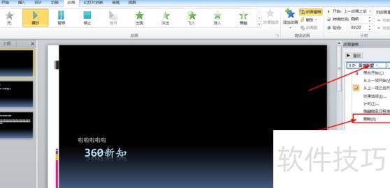 在右下角找到PPT动画内容,点击带播放图标的编辑命令并删除。