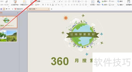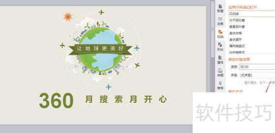 在工具菜单栏中找到右侧的幻灯片切换选项并点击。