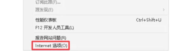 点击右上角的齿轮图标(或“工具”菜单),选择“Internet选项”。