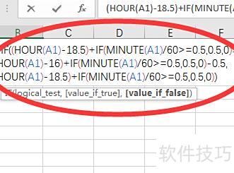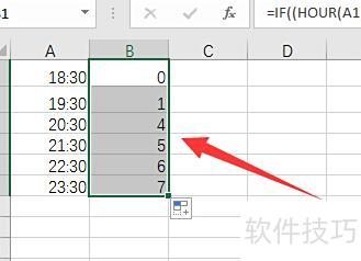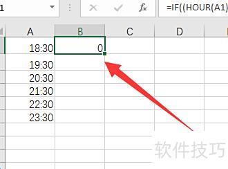 以18点30分后为加班时间,在B1单元格输入相应计算公式。