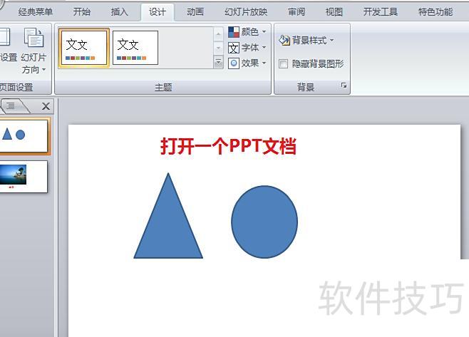 在PPT菜单栏中选择设计选项并点击。
