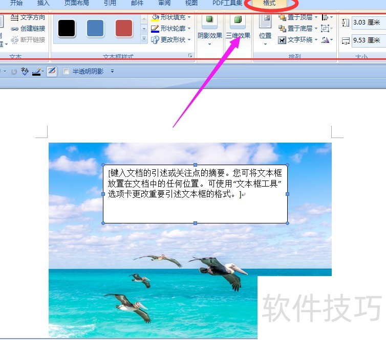 通过格式菜单中的工具,将文本框的填充颜色和边框均设为透明无色,使文字与图片更协调,从而顺利完成文字添加。