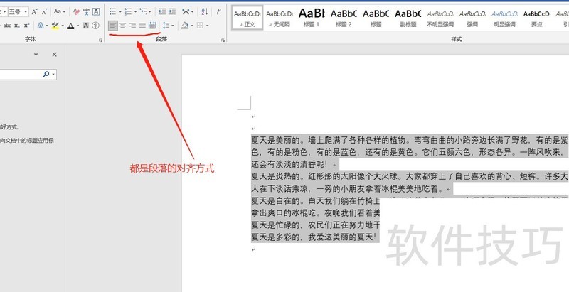 设置段落文字的对齐方式